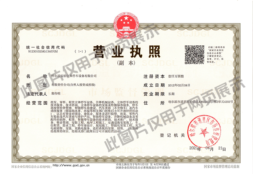 哈爾濱安泊立體停車設備有限公司成立于2012年,是享有中華人民共和國特種設備安裝維修資質的黑龍江省首 家專門從事停車庫(場)投資建設、經營管理、規劃設計、銷售安裝維護保養各類智能機械立體停車設備的專業靜態交通系統運營商。